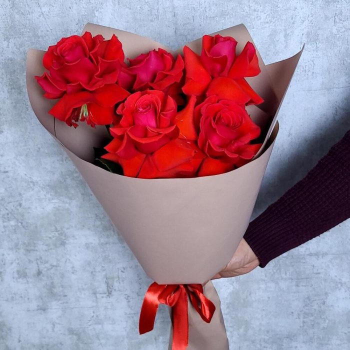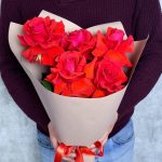 Роза красная Эквадор – 5 шт.Упаковка дизайнерская – 1 шт.